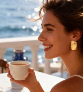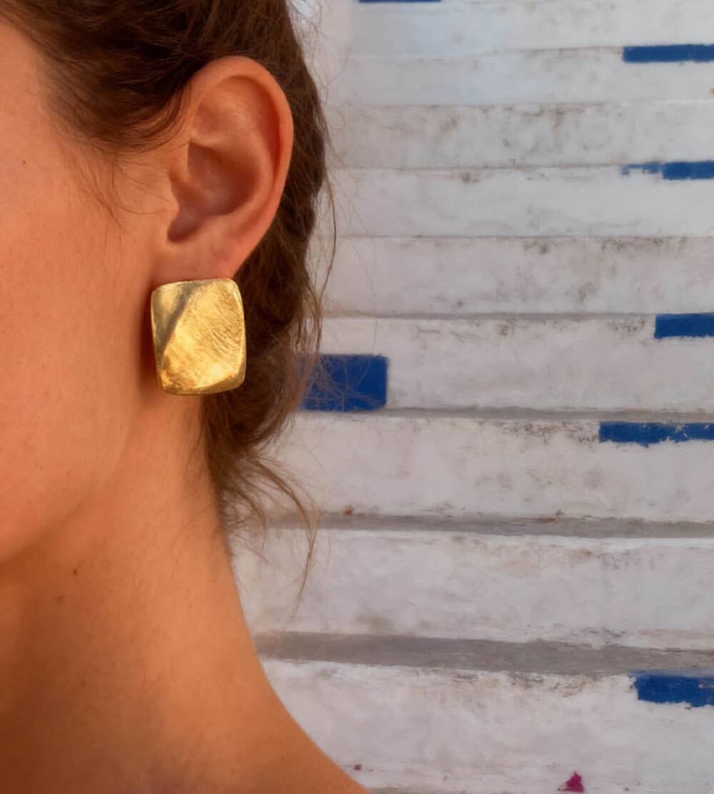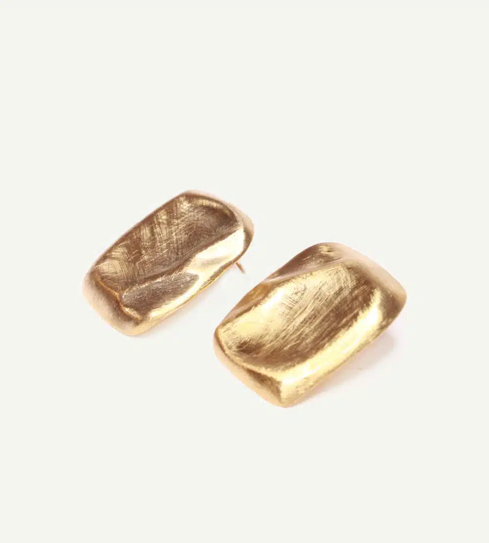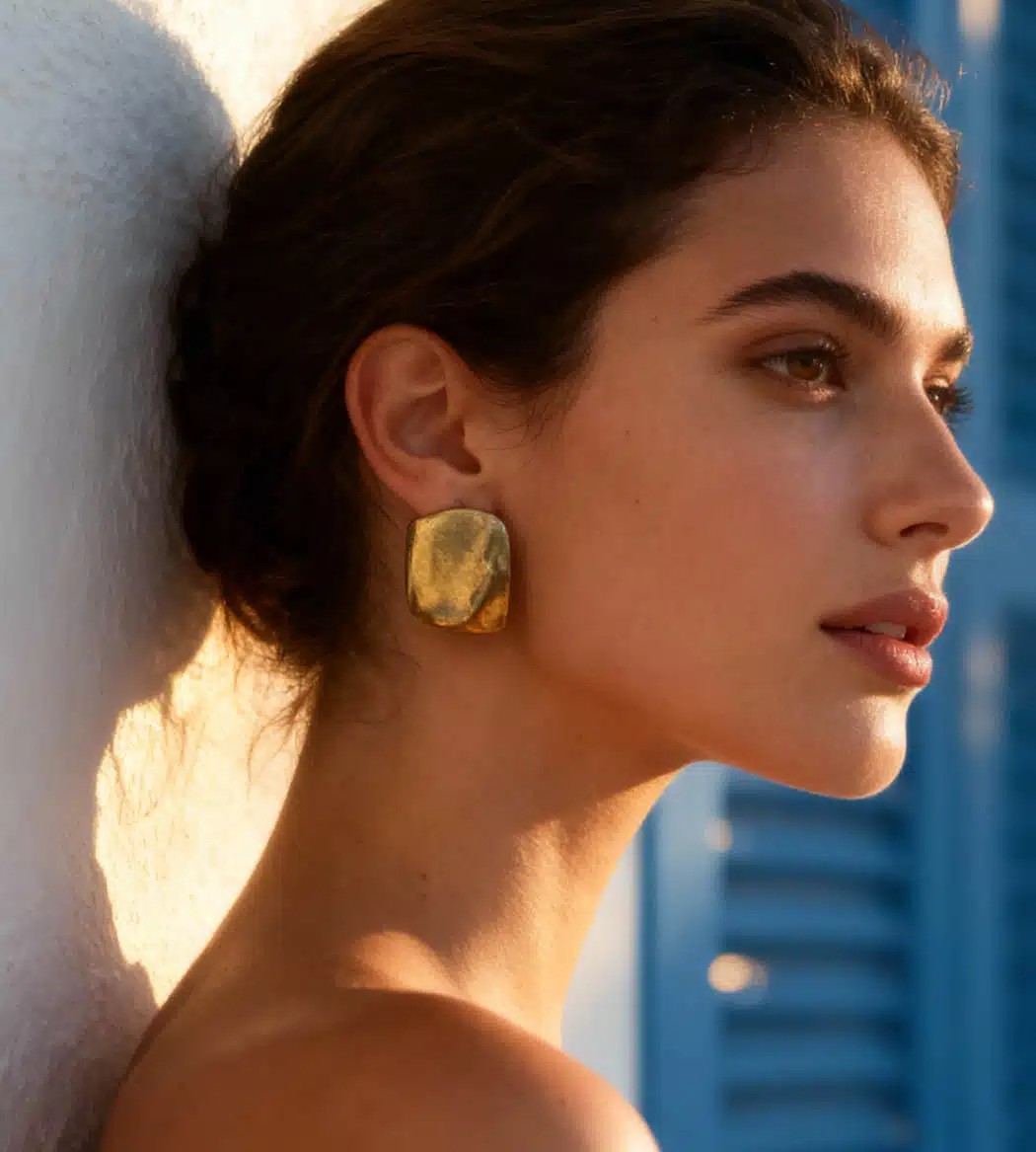 Inspirées des galets polis des plages des Cyclades, ces boucles dorées adoptent une forme organique et un fini brossé qui capte doucement la lumière. Minimalistes mais singulières, elles rehaussent un look quotidien comme une tenue du soir. À porter seules pour un chic épuré ou associées aux perles bleu Égée et bordeaux de la collection. Fermoir tige avec poussette pour un porté sûr et confortable.