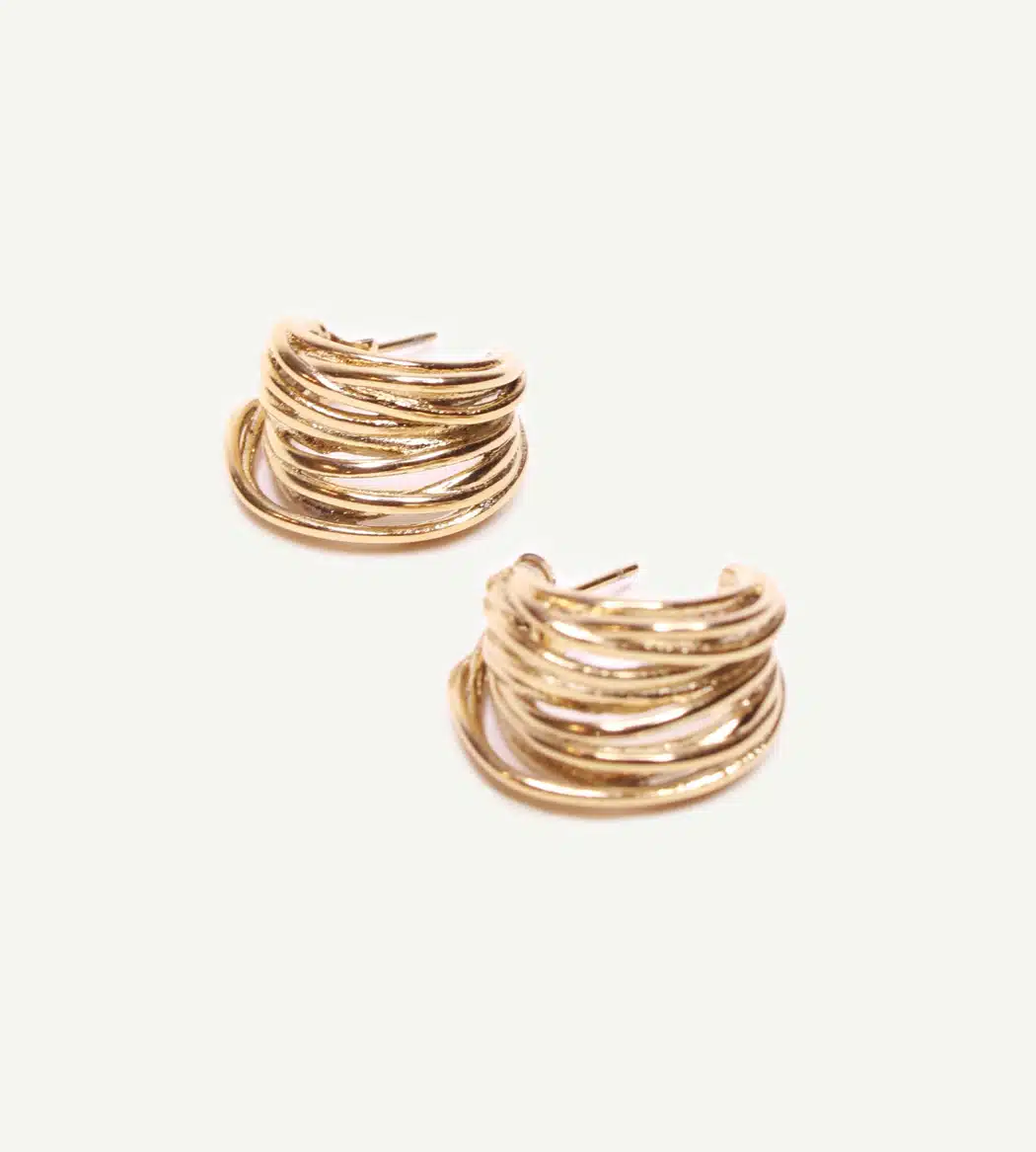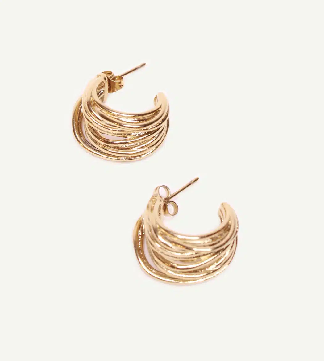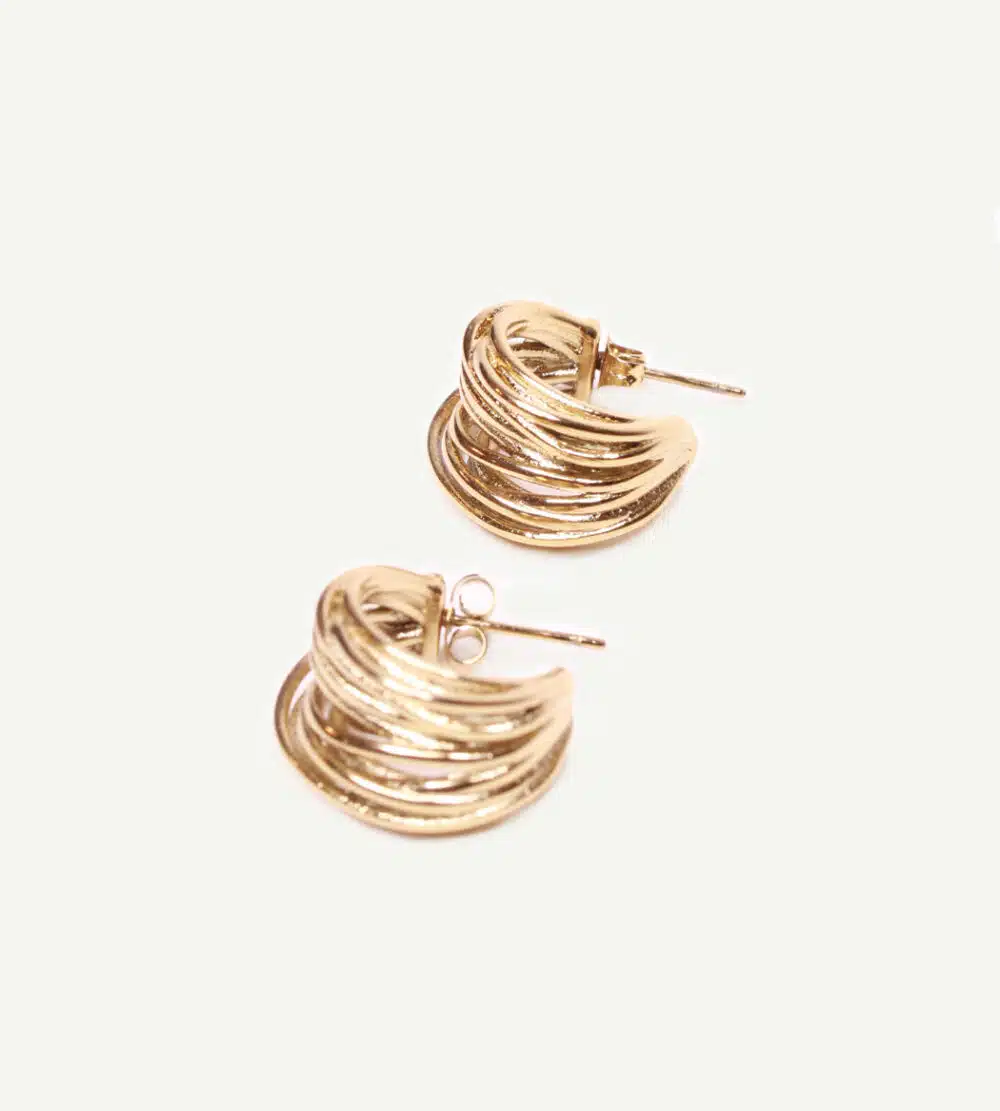 Des petites créoles dorées à filaments empilés. Légères et délicates, elles se marieront à tous vos styles
